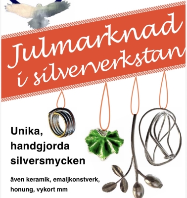 Unika, handgjorda, egendesignade silversmycken samt keramik och konstverk i emalj. Samt honung från egen bigård. Glögg och peppisar.